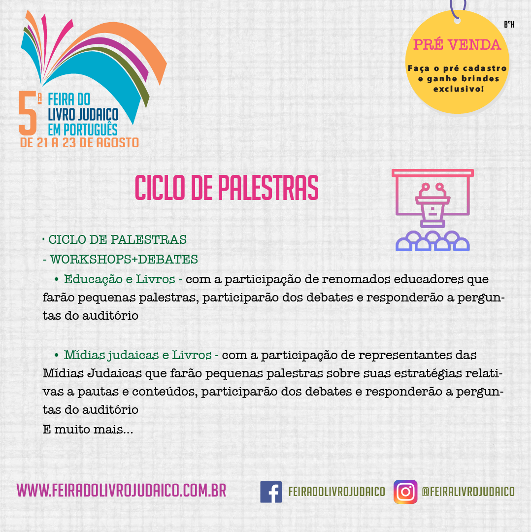 5ª Feira do Livro Judaico, Espaço Orá Vessimchá - Rua: Newton Prado, 76 - Bom Retiro São Paulo - SP
